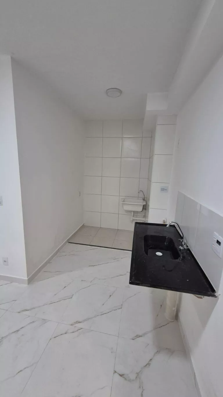 Apartamento com 1 dormitório, sala, cozinha americana e lavanderia.